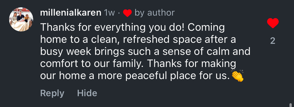 Our all-female team is known for delivering an exceptional clean every time. We pride ourselves on being dependable, detail-oriented, and always maintaining the highest standards of service.